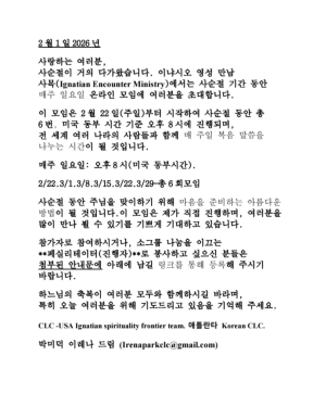 | 13 | [공지] < 영의 식별 특강 > 김미정 아네스 수녀님과 함께 | 2026-1-26 | 1889 |